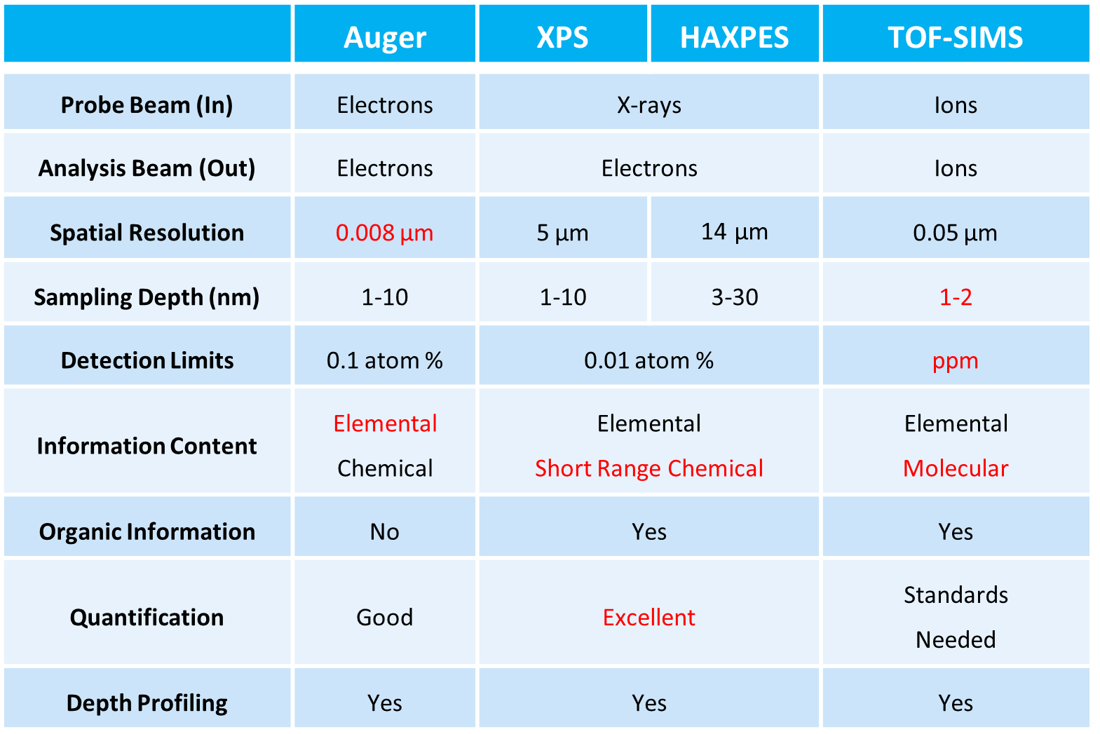 Surface analysis measurements provide a means to correlate performance with surface composition and structure. This knowledge can be used to accelerate the development of new materials or improve existing materials' performance. The ability to characterize thin-film structures, which can be imagined as multiple discrete layers separated by interfaces provides a unique opportunity to examine the composition of materials in each layer and study interactions between them. The ability to analyze sub-micron features, defects, or particulate contaminants is of critical importance to increasing product yield in all industrial applications, including semiconductor device fabrication, hard disk read/write head and magnetic media fabrication, specialty glasses and mirrors, composite materials, renewable energy and power storage, etc.